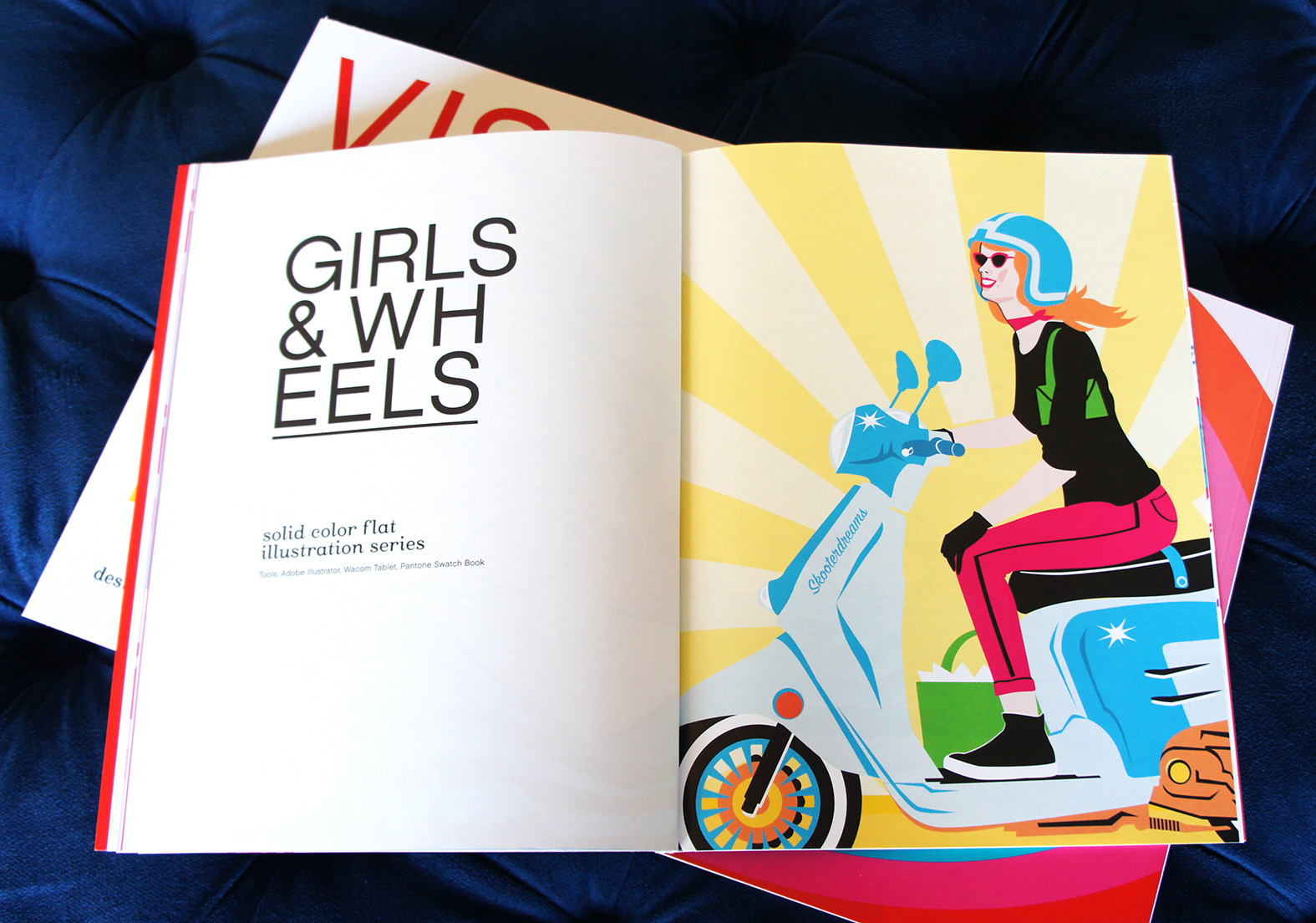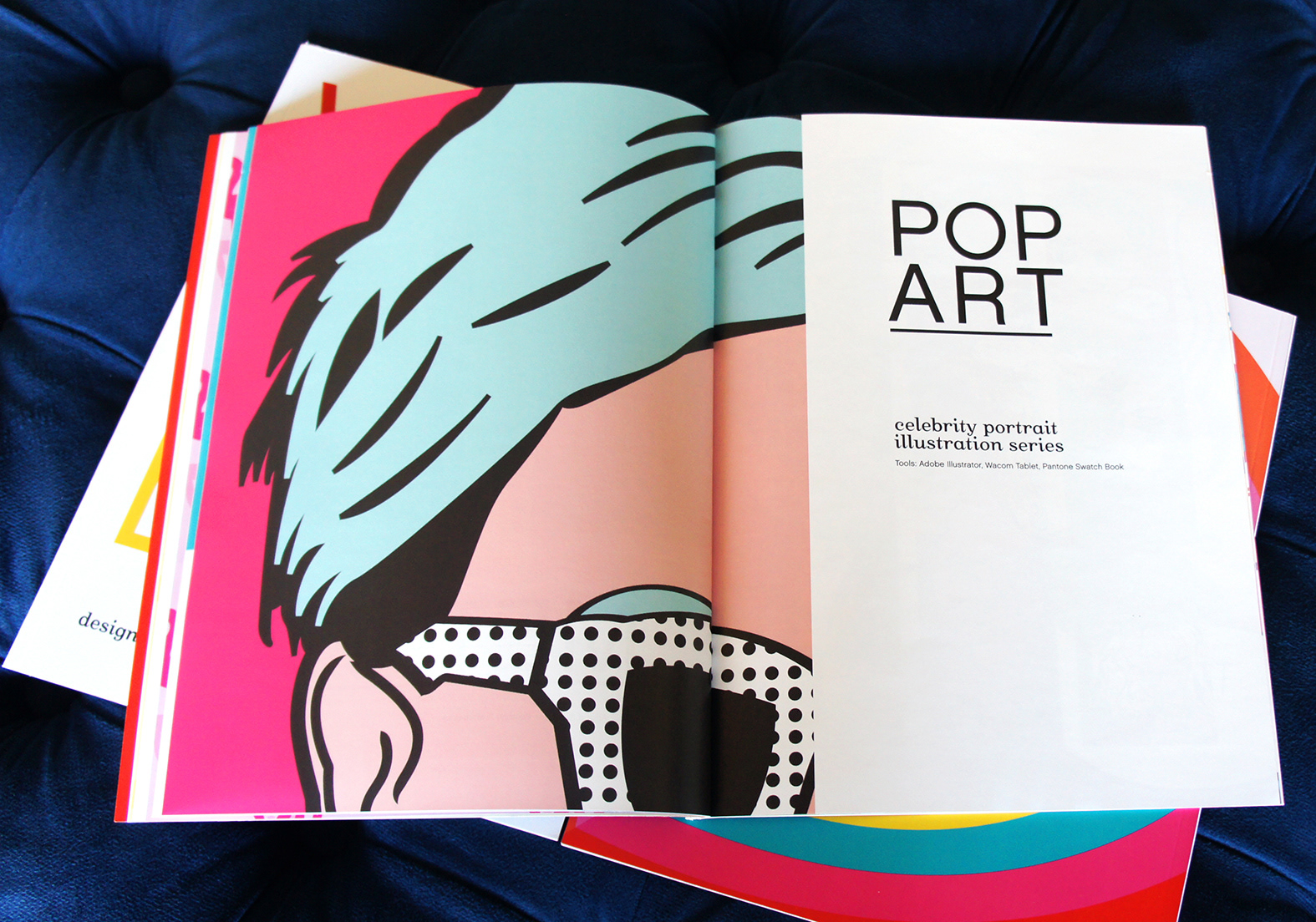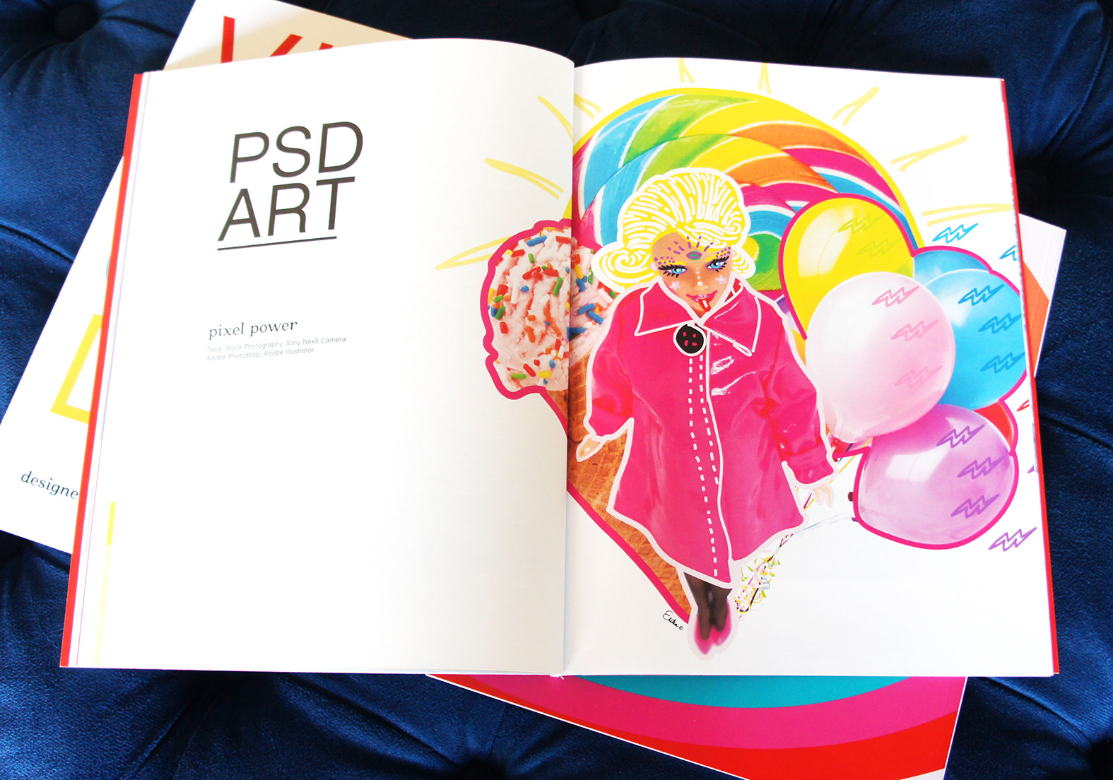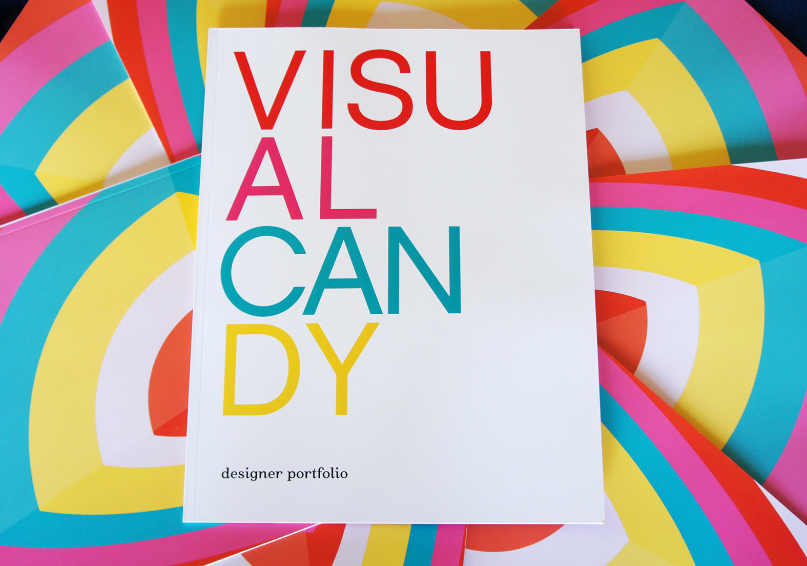 I created a new portfolio this year in a magazine format. The portfolio focuses on my personal digital art using illustration, photography and both Adobe Illustrator and Photoshop. I titled the portfolio Visual Candy and, in InDesign, I worked the overall design around that theme while coming up with the various minimalist page layouts and typography and vivid color.